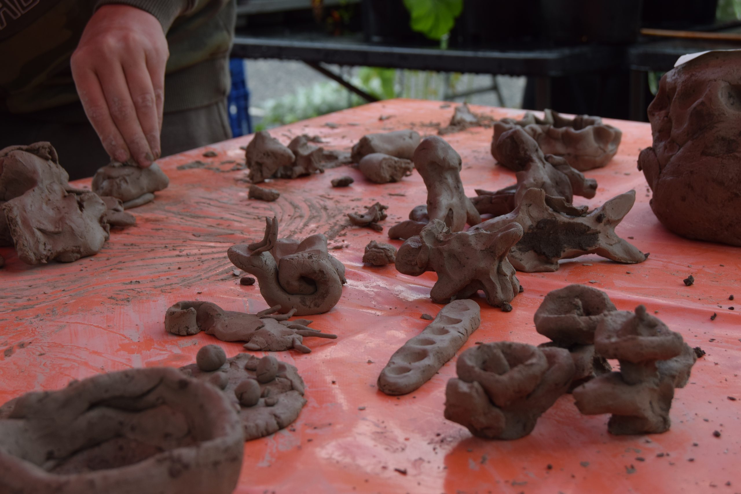 At July’s Farmer's Market we marked the final event in Kawther Luay’s project The Gathering Table – Act 3: Clay – with the help of artist Fionn Duffy. Fionn has collaborated with Kawther to design a set of ceramics made from River Bogie clay, to use in a series of meals as ‘hosts’ for ingredients and cultures to transform. Visitors to the stall got their hands into some wild clay we gathered from the River Bogie and learned how to forage and identify it for themselves!