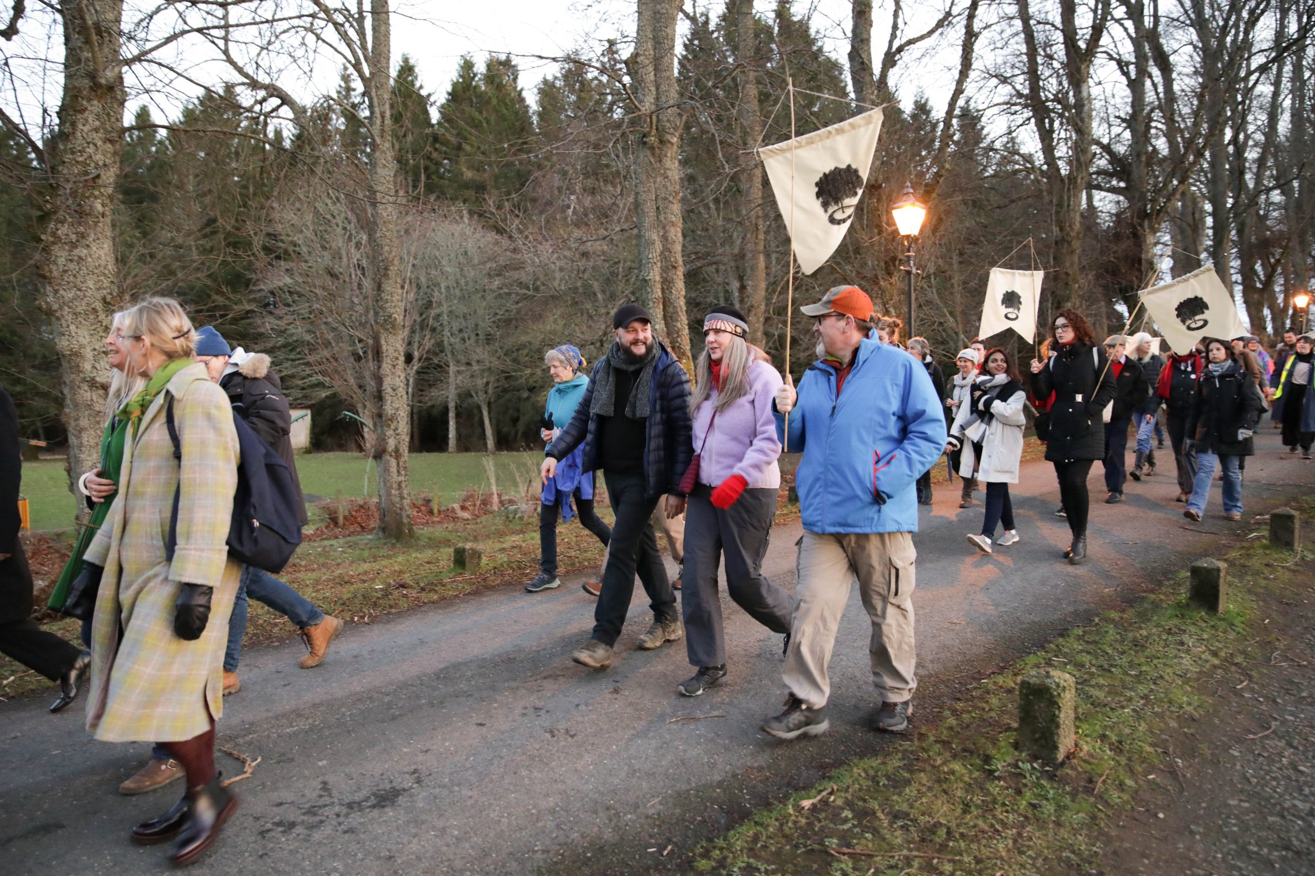 Our first market of the year came around, and turned our stall into a makeshift movie theatre, the Eurotelevison Cinema to mark the second anniversary of Britain leaving the EU on 31st January 2020. We were screening Clemens Wilhelm and Jan Martinec’s film The Brexit Tree which follows the story of Clemens' project The Weeping Willow Tree and the impact of Brexit around Huntly, the country and the continent… there was popcorn too! After the market, we took a walk down to the Weeping Willow Tree to continue discussions about how we're faring a post-Brexit town and country.