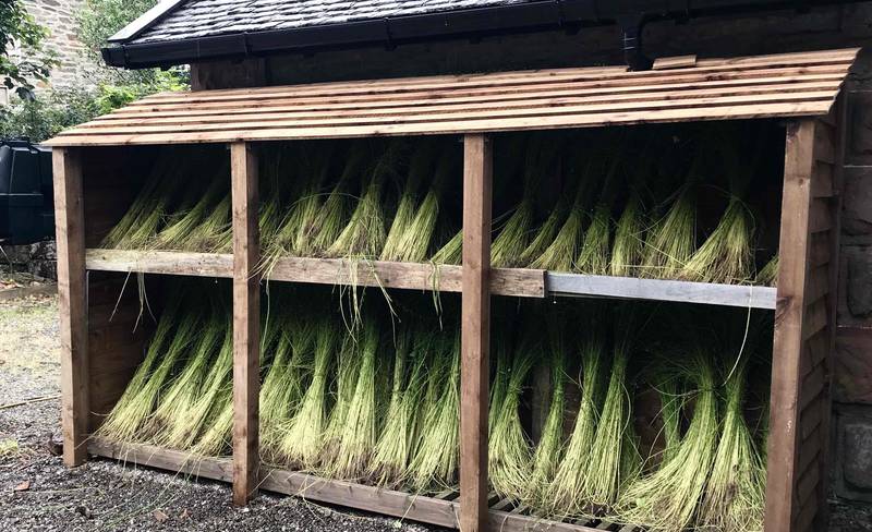 After seeing the artefacts in the former Brander Museum which document Huntly's thriving eighteenth century linen industry, Christine embarked on researching this heritage and its subsequent decline in slow time; through the growing, harvesting and processing of the flax plant which for centuries was widespread in the area. Her enquiry took place alongside a community of interested local growers and craftspeople, led by the Town is the Garden project team. Starting on 5th April 2019, a section of a circular flax planting was seeded every week for 6 weeks in the Brander Garden where it grew as the literal test-bed for this project. A regular series of talks and events to consider and share some of the project's wider themes took place throughout the growth cycle of the plant, reflecting the alchemical potential that simple seed-sowing can lead directly to production of the finest bed linen, lace or burial shroud.
