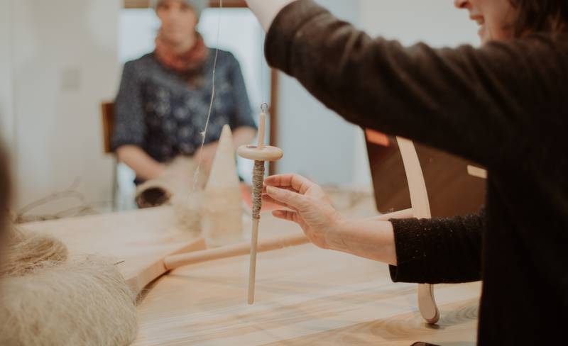 In the second part of her project, moving from Flax (2019) to Flax Turns (2021-2022) Christine learnt the process of flax spinning, together with textile artists Daisy Williamson and Lynne Hocking. Working both in person in Huntly and remotely at home, the three stayed in touch while spinning the flax grown and processed in Huntly by Christine and local participants during 2019. Continuing the project’s entanglement with seasonal practices, the spinning took place during the darker days of winter, with the accumulated thread becoming ready for weaving in spring 2022.