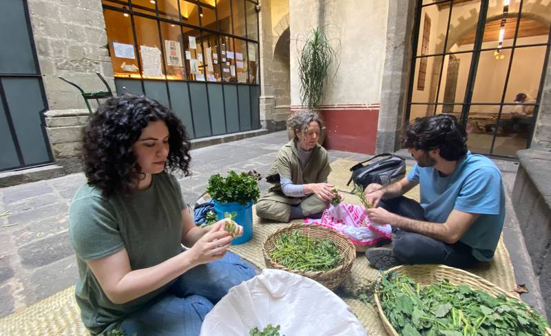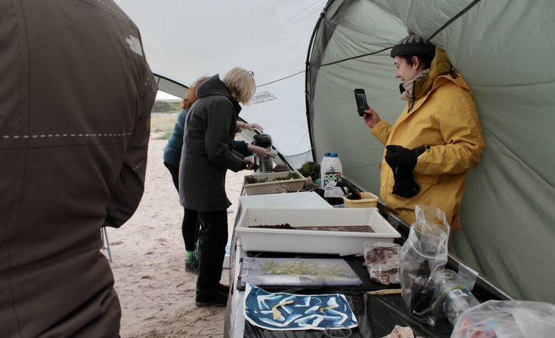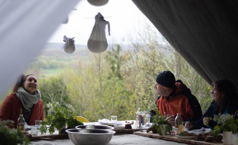 Through the simple act of foraging, The Gathering Table considered the wild produce and natural materials available in and around Huntly, slowly drawing together hand-gathered and hand-made produce: co-creating meals, tinctures, textiles and objects that embody forward-thinking ancestral and indigenous wisdom. In parallel, the project also allowed Kawther and Deveron Projects to think critically about how hospitality sits within an artistic programme, exploring the role of guest and host when working internationally and in a socially engaged way. By reflecting on the interconnected value of meals, Kawther took into account the whole spectrum of relations within the social context of eating together; moving away from the independent expression of the private artist, towards creative spaces that are produced through collective experience. The project culminated in a series of three meals in three different locations – The Gathering Table in Three Acts.