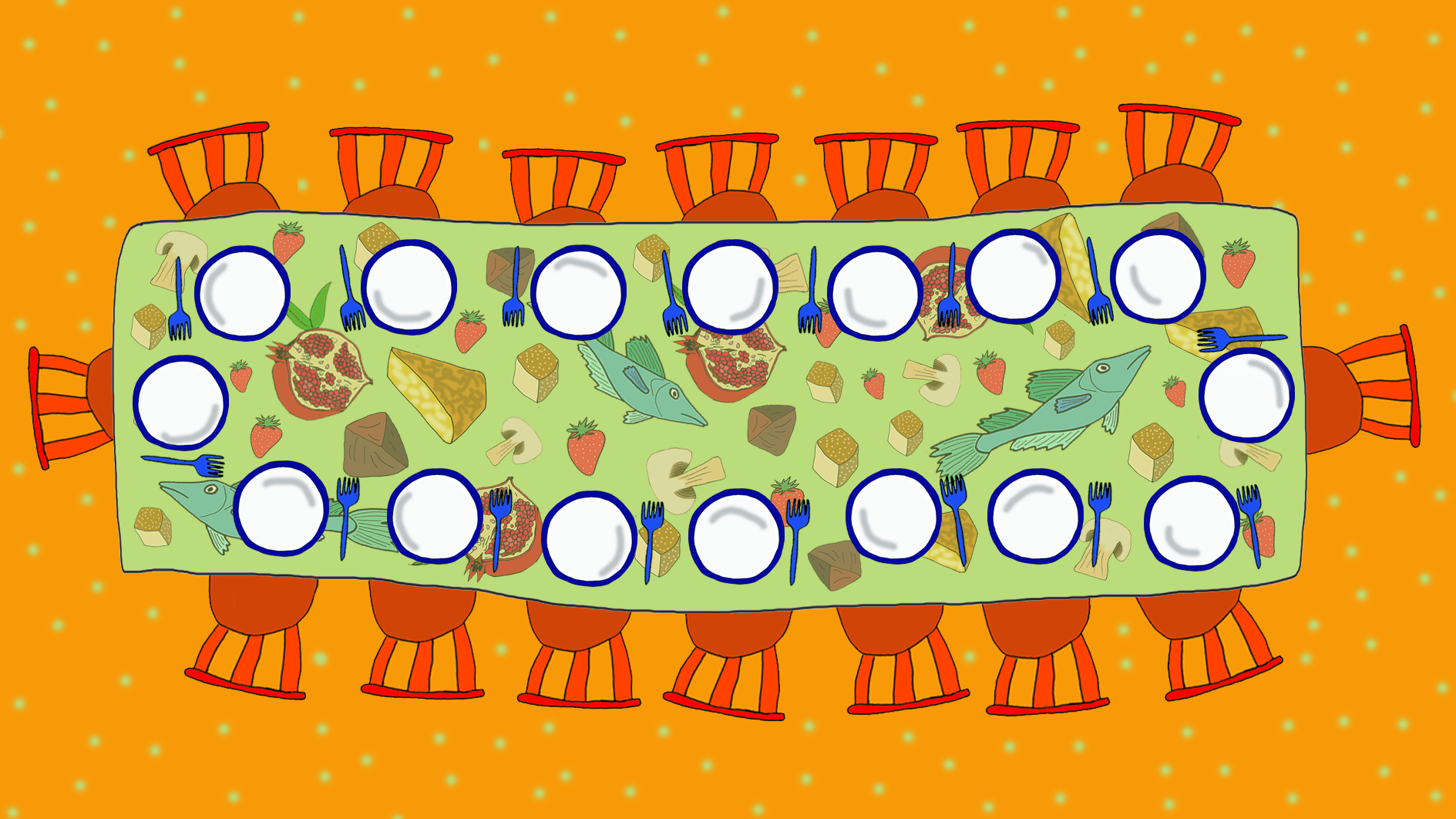 Rina and Wani's Indonesian Aubergine and Salad // Irineu's Portugese Fish Rice and Cornbread // Anita's Polish Pierogi // Mina and Fi's Comforting Tattie Mash // Ian's Whisky Cured Hake // Rosie's Venison or Mushroom Stroganoff // Dina's Persian Pomegranate Stew // Kawther's Fire Pit Pumpkins, Venison and Soul Cakes // Joaquín's Spanish Tapas